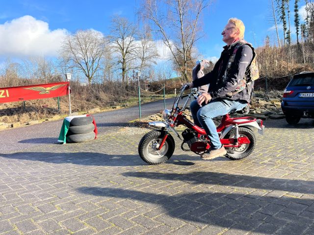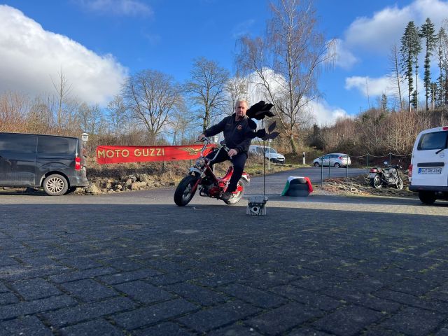 anschließend mit der Moto Guzzi Magnum eine abgesteckte Rundstrecke abgefahren und anschließend nochmal 10 Runden auf der Carrerabahn absolviert werden.